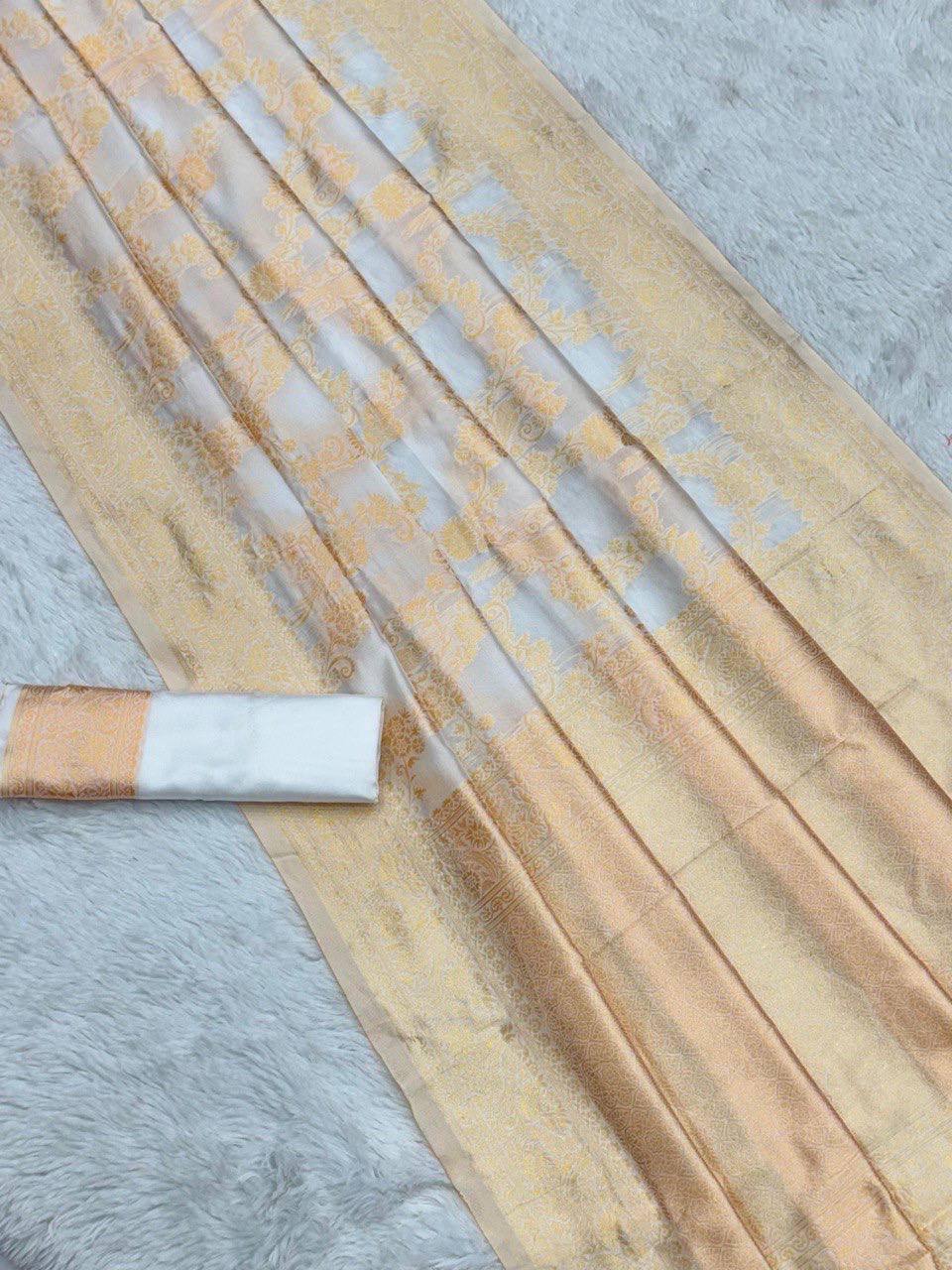 With a comfortable weight of 460 grams, it offers a graceful fall without heaviness. Whether it’s an intimate family wedding or a big fat Indian wedding, this saree ensures your outfit never comes in between your fun and celebrations.